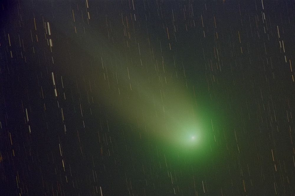 Helligkeit von etwa 0 mag. Sein grünlicher Plasmaschweif erreichte eine Länge von etwa 60°-80°.