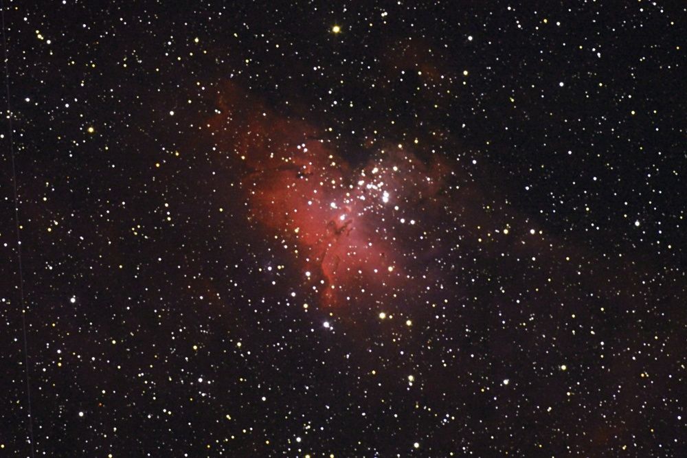 Der Adlernebel ist ein Emissionsnebel, aus dem sich der offene Sternhaufen M16 bildet.
