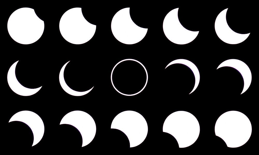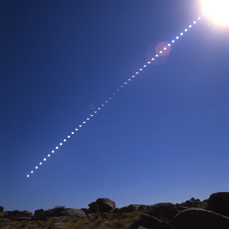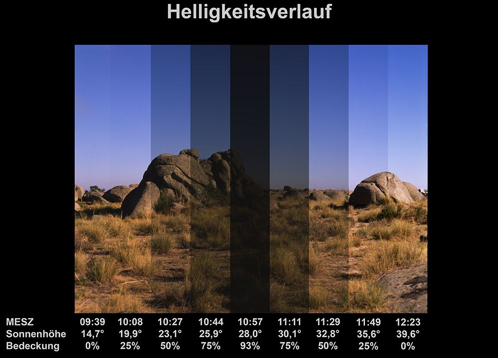 Verlauf der Finsternis. Hierfür wurde ein Bild alle 12 Minuten belichtet.