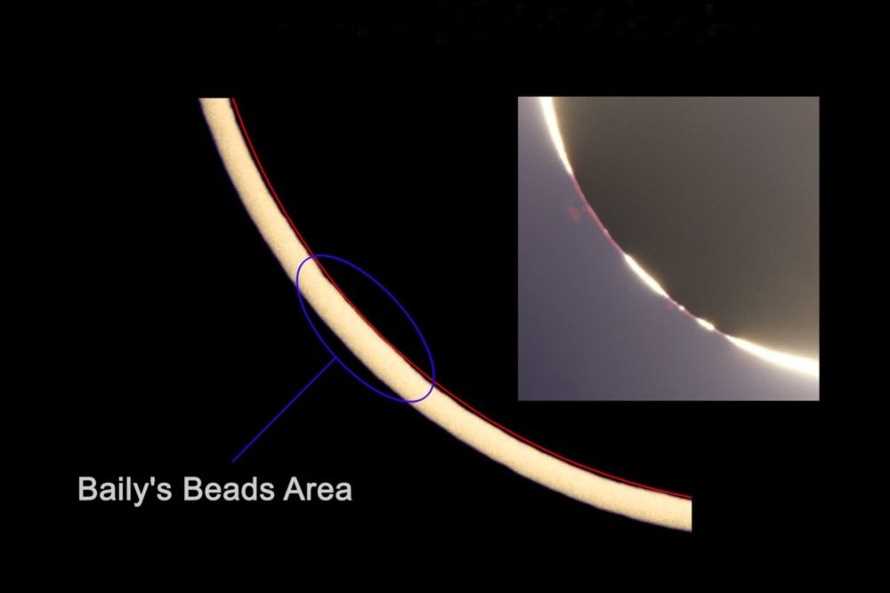 Perlschnuraufnahme der Finsternis. Hierfür wurde ein Bild alle 5 Minuten belichtet.